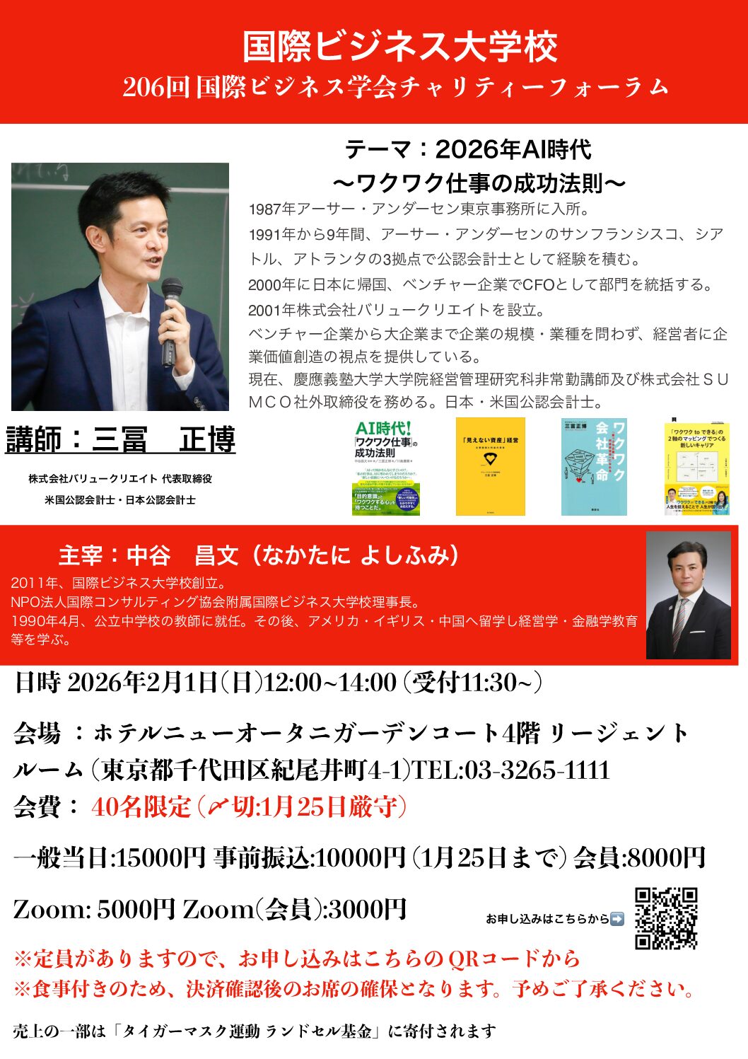 【2026年2月1日 国際ビジネス学会チャリティーフォーラム開催のお知らせ 講演者:三冨 正博 氏】